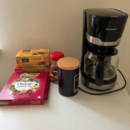 Self-catering facilities include a fully furnished kitchen featuring a refrigerator, a toaster, and kitchenware, along with coffee/tea making machines. The apartment is at the doorstep of Prazskeho Povstani underground station and 25 km from Vaclav Havel Prague airport.